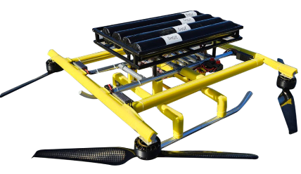 空飛ぶクレーンは鉄塔などの高所の構造物のメンテナンス作業に使用可能。塗料缶やボルト・ナットなどの資材を高い位置にある作業現場に届けることができます。